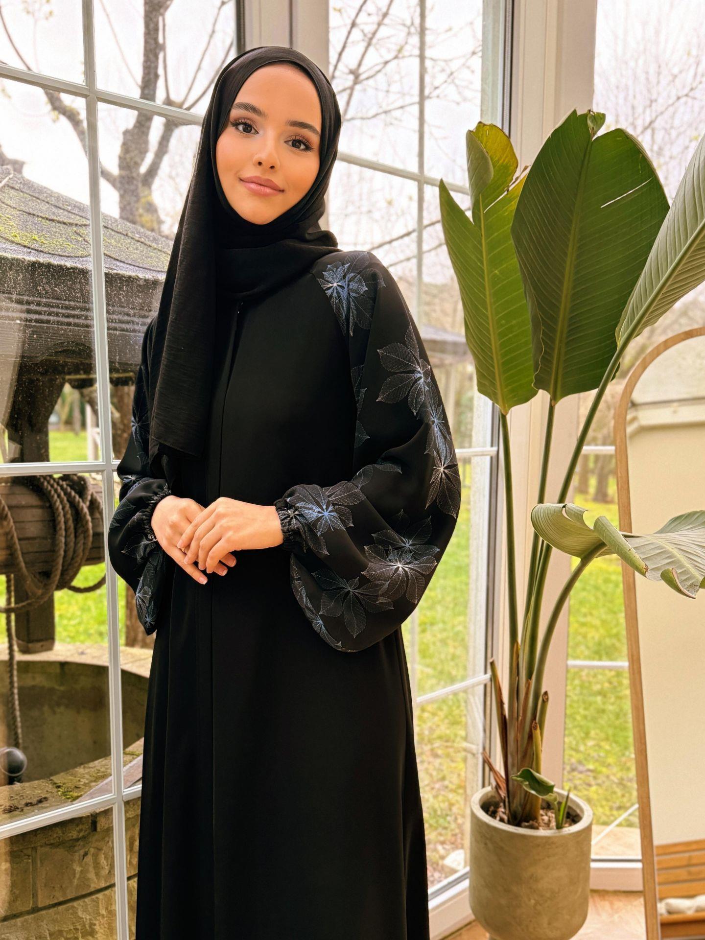 Çınar  Reglan Ferace model ürünümüzün kumaşı dubai ipeğidir.