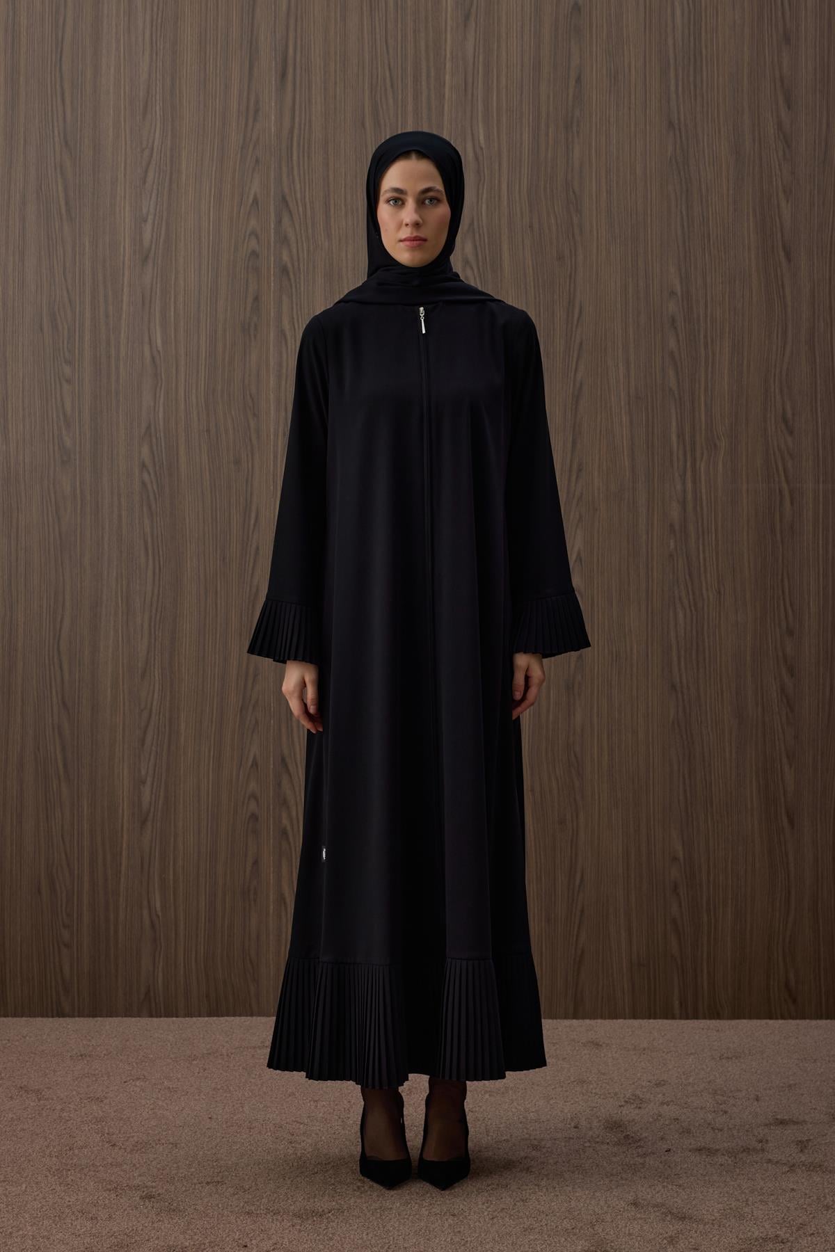 Ürünümüzün kumaşı kreptir. Piliseli Feracemiz önden gizli fermuarlıdır. Kol uçlarında pilise detayları mevcuttur. S M L XL XXL bdenleri ile 46 bedene kadar uyumludur.